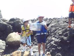 磯にいる魚・貝・海藻、遠い国から流れ着く漂着物、遥か昔の化石など、宇久井の磯にはいろいろな楽しみがあります。わたしたちスタッフが、磯で自然とのふれあいのお手伝いをします!