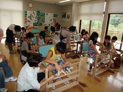 | 特製の織り機を使って編み上げます | お子様でも楽しく参加していただけます |
